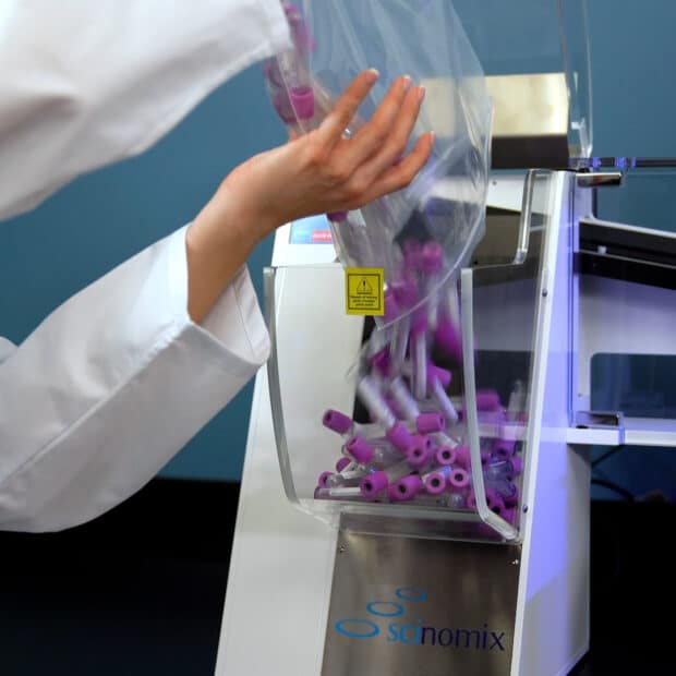 With the Scinomix VXQ, users can eliminate errors from hand-labelling tubes in the lab.